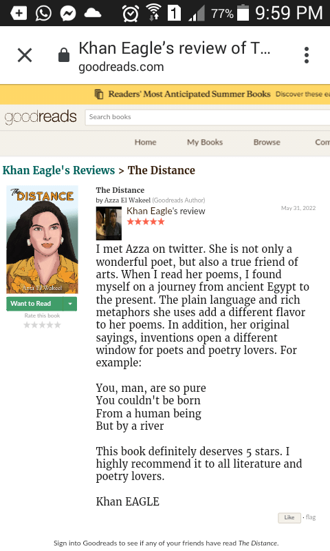 Khan Eagle wrote this heartwarming review on my poetry book “The Distance” on my goodread’s author page,